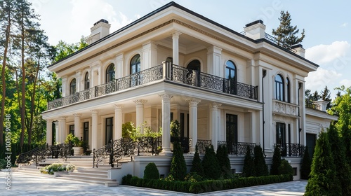 Obraz premium Elegant Greek Revival Style Home with Balconies