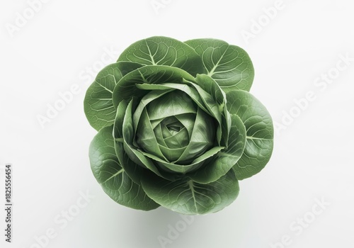 Obraz premium Elegant green butter lettuce head top view for healthy cuisine