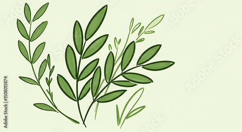 Obraz premium Elegant Green Foliage Illustration Hand Drawn Greenery Botanical Artwork Nature Design