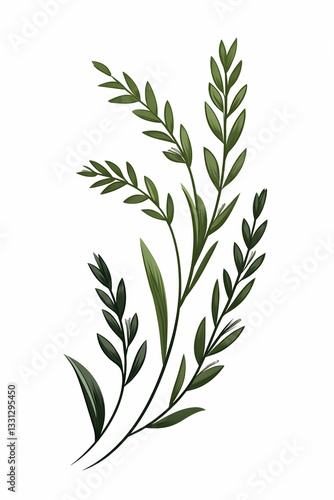 © CHURIN, Naklejka premium Elegant green foliage sprig illustration