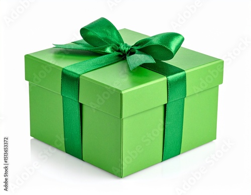 © RR 27, Obraz premium Elegant green gift box with green ribbon isolated on white
