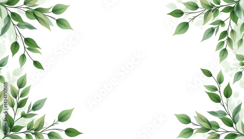 © KAMAPAN, Naklejka premium Elegant green leaves border with blank space.