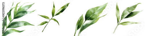 Obraz premium Elegant Green Leaves Isolated on White Background for Decoration