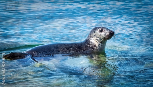 Obraz premium Elegant Grey Seal Swimming in the CrystalClear Waters of the Cornish Coast,...