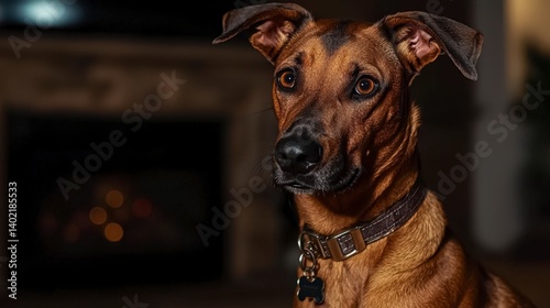 © Tinnaphat, Obraz premium Elegant greyhound portrait indoor setting closeup image warm lighting creative angle animal beauty