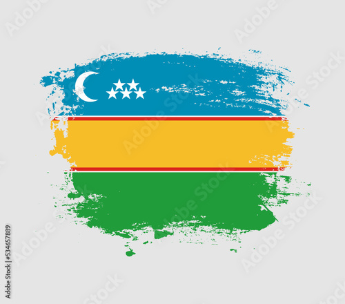 Fototapeta premium Elegant grungy brush flag with Karakalpakstan national flag vector