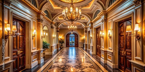 Fototapeta premium Elegant Hallway Interior: Warm Lighting & Classic Architecture - Drone...