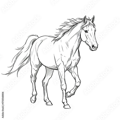 Fototapeta premium Elegant hand-drawn horse sketch with flowing lines, capturing natural grace...