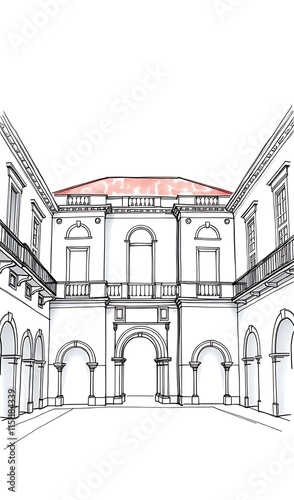 Fototapeta premium Elegant Hand-Drawn Sketch: Classical Courtyard Illustration. AI Generated