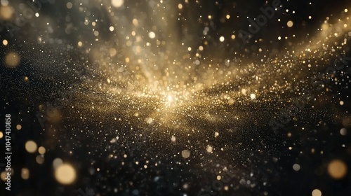 © phianguma, Fototapeta premium Elegant Happy New Year message on a dark, moody abstract backdrop with subtle bursts of gold and silver fireworks in the background.