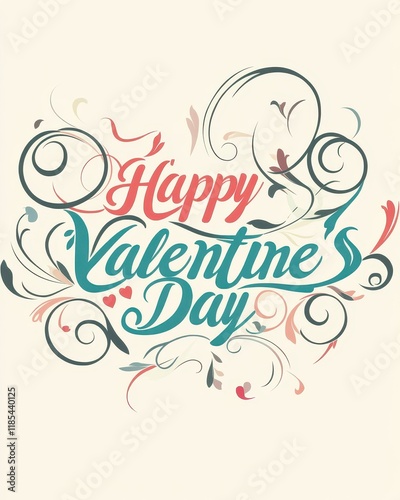 © Feri, Obraz premium Elegant Happy Valentines Day Design with Floral Swirls and Heart-Shaped Typography.