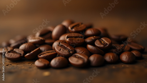 Naklejka premium Elegant Heap of Coffee Beans on Rustic Backdrop