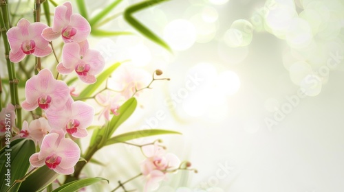 © Georgii, Obraz premium Elegant high-key mockup with a frame of pink orchids on a light background