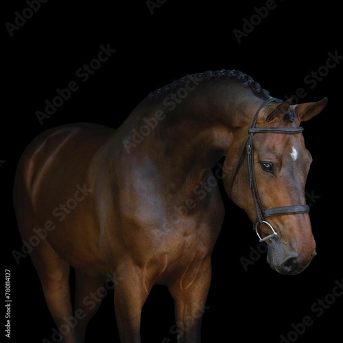 © mamo studios, Obraz premiumElegant horse portrait on black backround. horse head isolated on black. Portrait of stunning beautiful horse isolated on dark background. horse portrait close up on black background.studio shot .
