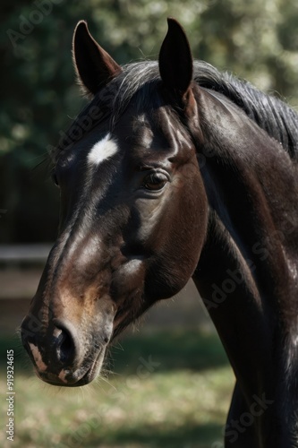 © Nemanja, Obraz premium Elegant Horse with a White Stripe and Black Mane: A Beautiful Contrast