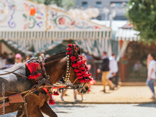 © javidestock, Fototapeta premium Elegant Horses Adorned for Seville April Fair Celebration