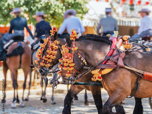 © javidestock, Fototapeta premium Elegant Horses Adorned for Seville April Fair Celebration