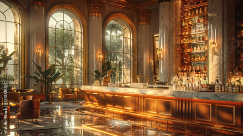 Fototapeta premium Elegant Hotel Bar with Marble and Golden Accents