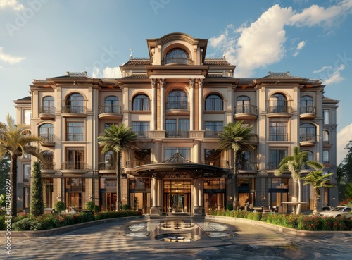 © duyina1990, Naklejka premium Elegant Hotel Exterior Design Illustration