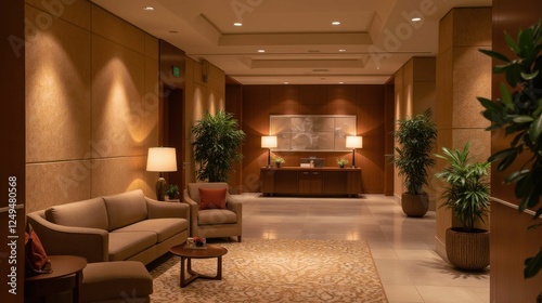 Fototapeta premium Elegant Hotel Lobby with Modern Furniture and Soft Lighting