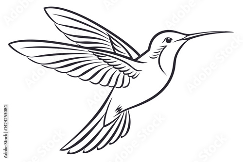 Obraz premium Elegant Hummingbird Illustration Black And White Line Art Vector Design