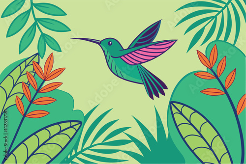 Naklejka premium Elegant Hummingbird in Flight Vibrant & Artistic Nature Illustration