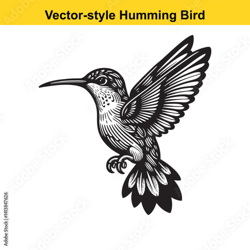 © Mdekramul, Fototapeta premium Elegant Hummingbird Line Art – Flat Vector Style with Transparent Background