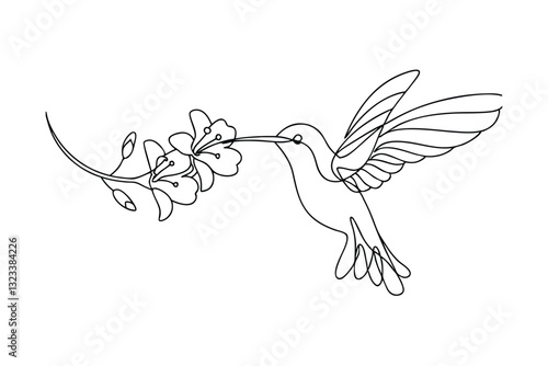 Obraz premium Elegant Hummingbird Line Art Floral Nectar, Bird in Flight