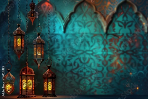 Obraz premium Elegant Islamic Lanterns with Decorative Background