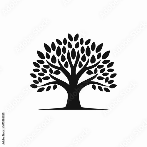 © Christopher, Obraz premium Elegant isolated tree illustration with many oval leaves displaying dark silhouette