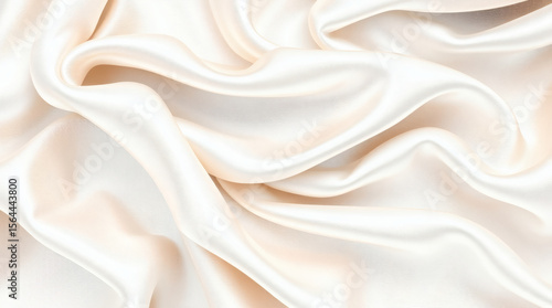 Fototapeta premium Elegant ivory silk fabric billowing gracefully, creating soft folds and delicate shadows, beautiful and smooth.