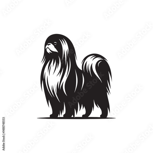 Fototapeta premium Elegant Japanese Chin dog silhouette vector illustration featuring the...
