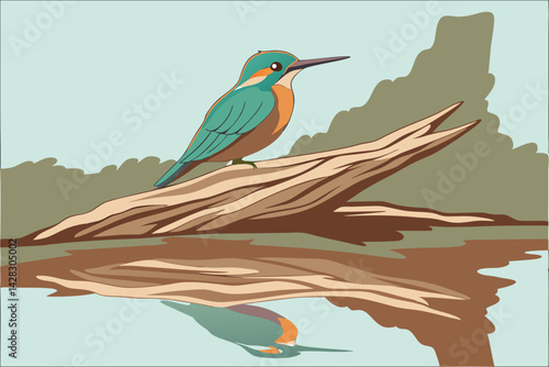 © idezignminno, Fototapeta premium Elegant Kingfisher Illustration Vibrant & Serene Wildlife Art
