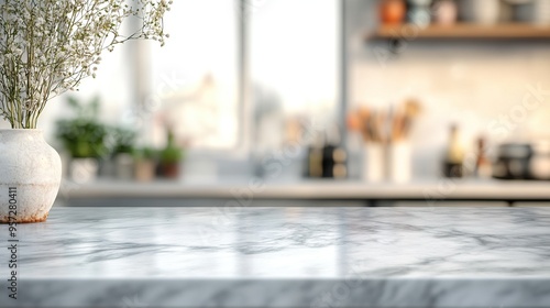 Obraz premium Elegant kitchen scene featuring a marble countertop and decorative vase,...