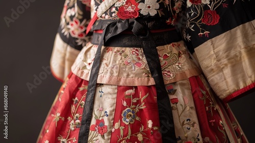 © Wp Background, Naklejka premium Elegant Korean Hanbok Garment with Intricate Embroidery Detailing, Cultural Clothing Fashion