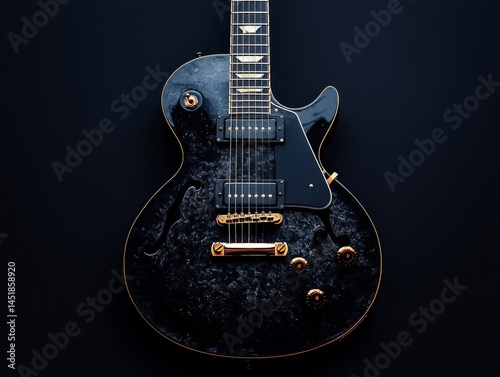 Fototapeta premium Elegant Les Paul: A Black and Gold Electric Guitar with a Marble Pattern...