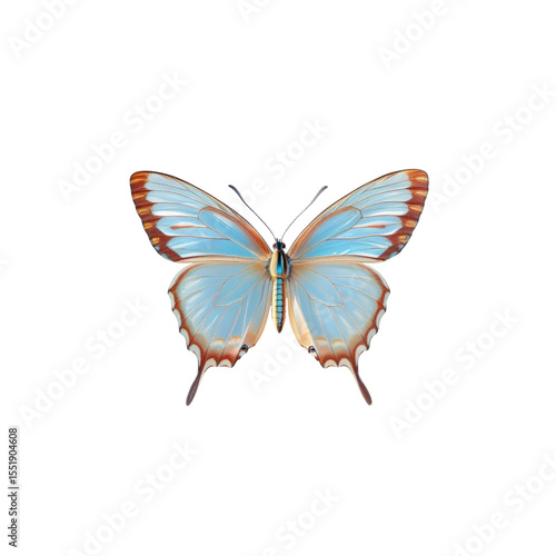 © CgDesign4U, Obraz premium Elegant Light Blue Butterfly with Brown and Teal Accents on Transparent Background