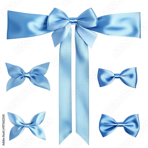 © ERiK, Naklejka premium Elegant light blue decorative bows for gift wrapping or party decoration on transparent background