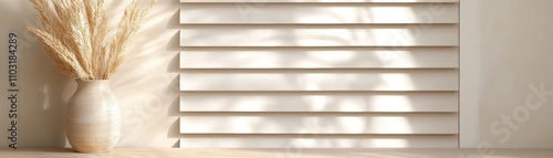 © Thi, Obraz premium Elegant light gray shutters: a natural and simple design accentuating modern home decor.