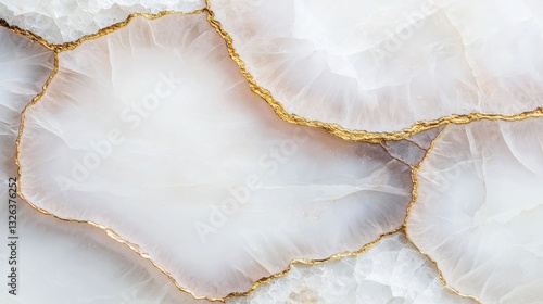 © warunthorn, Fototapeta premium Elegant Light Pink Geode Stone with Golden Edges in Natural Design