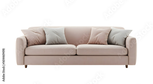 © nida sofiah, Obraz premium Elegant Light Pink Sofa with Cushions for Living Room Decor