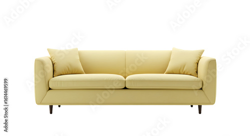 © nida sofiah, Obraz premium Elegant Light Yellow Sofa with Cushions in Modern Living Room