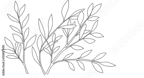 Naklejka premium Elegant Line Art Botanical Illustration Simple Leaves Branches and Floral...