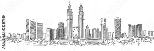 Obraz premium Elegant line art depicting Kuala Lumpur's iconic skyline, featuring the...