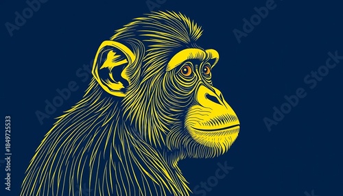 Obraz premium Elegant line art drawing of a monkey, intricate details, minimalist style,...