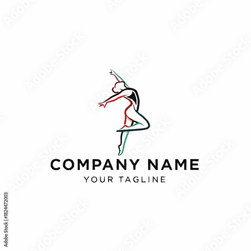 © Malikmagak, Naklejka premium Elegant line art logo of a graceful dancing figure.