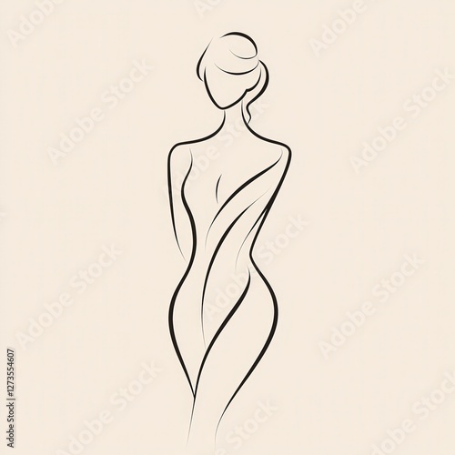 Fototapeta premium Elegant line art of a woman's figure with refined simplicity, symbolizing beauty and grace. Ideal for wellness, fashion, and art-related promotions.