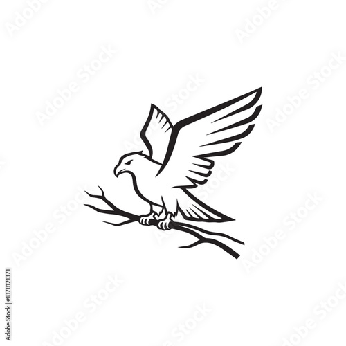 Obraz premium Elegant Line Drawing of a Bird in Flight Perched on a Branch.