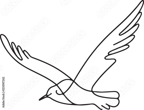 Fototapeta premium Elegant Line Drawing of a Flying Seagull in Vector Art