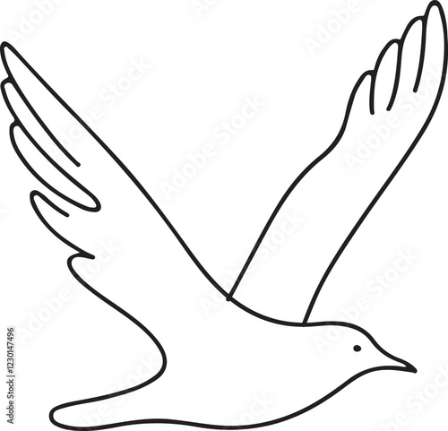 Fototapeta premium Elegant Line Drawing of a Flying Seagull in Vector Art